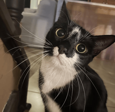 𝗜𝘇𝘇𝘆: The chatty kitten who hasn't quite mastered the meow. Instead, she shares gossip with the porch chipmunk in chirps! (We think?)